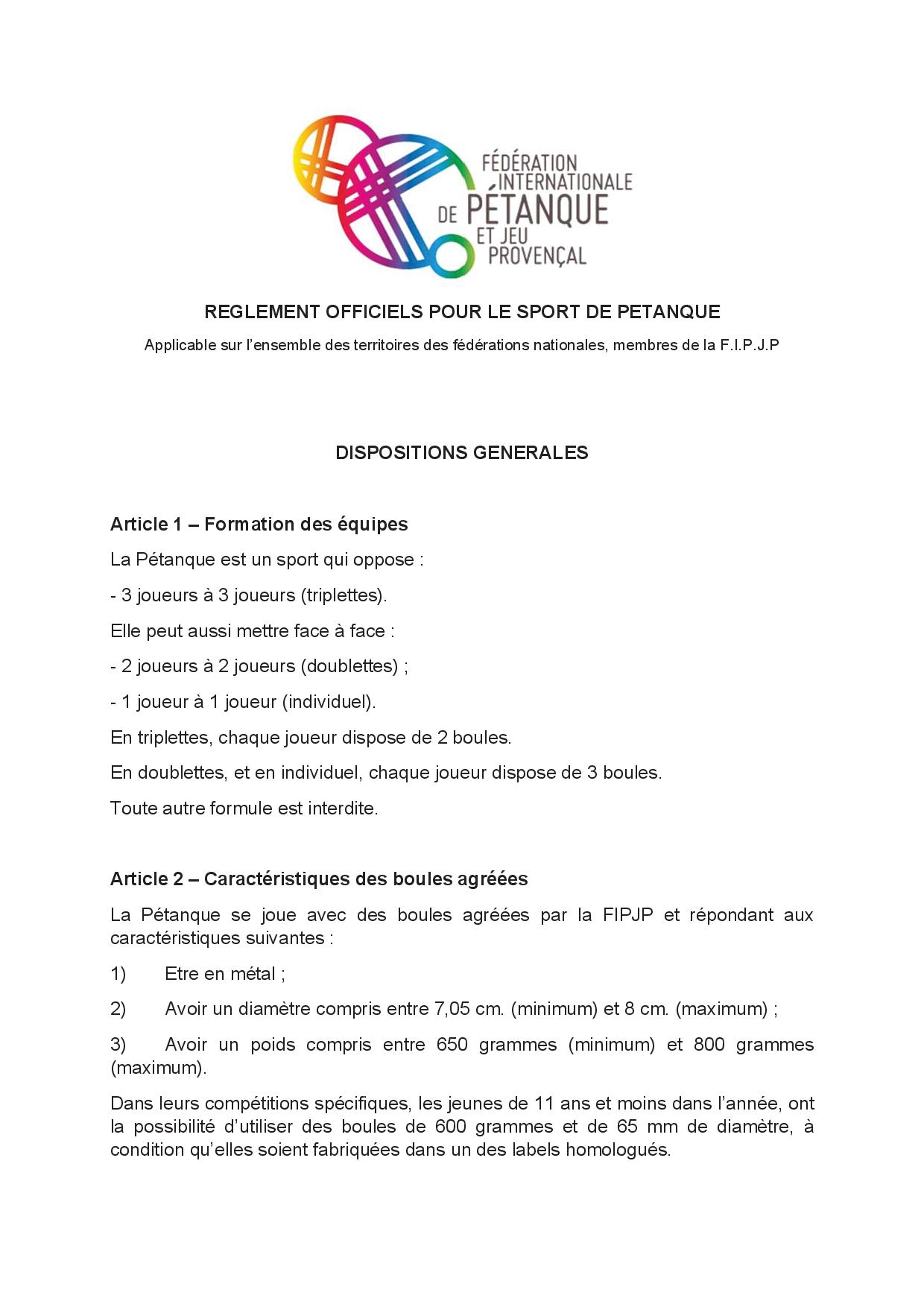 Réglement Oficciel de la Pétanque (Décembre 2020)