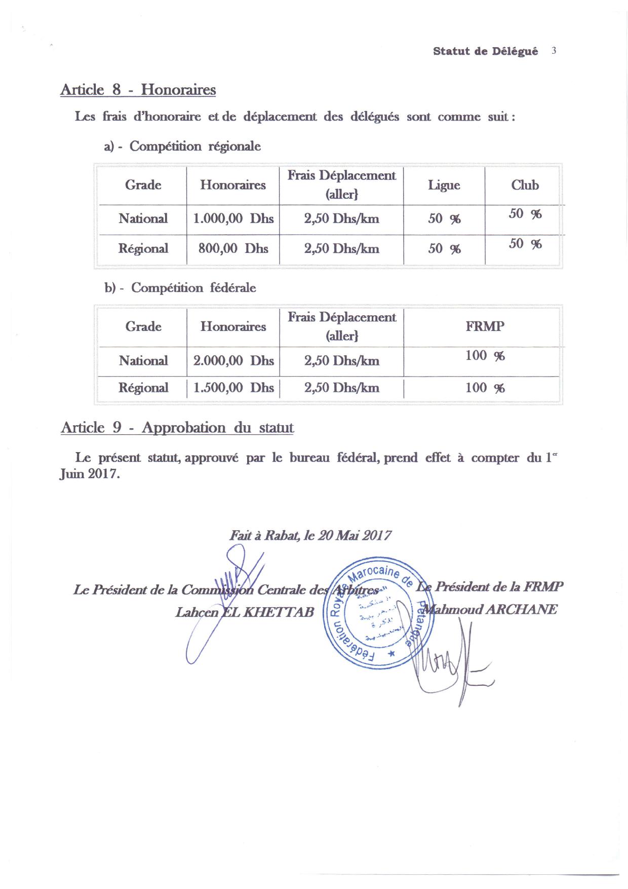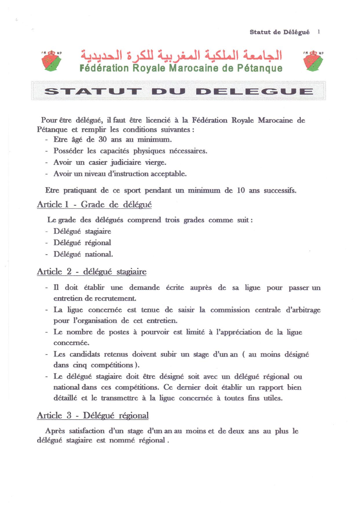 Statut du Délégue 2017