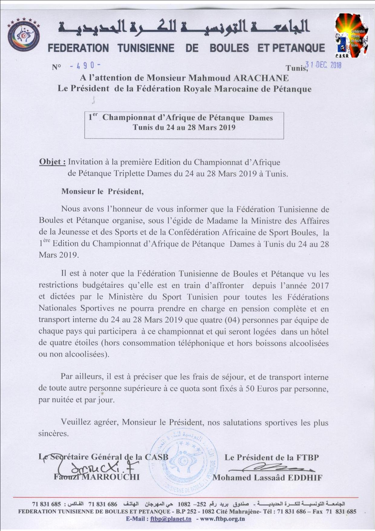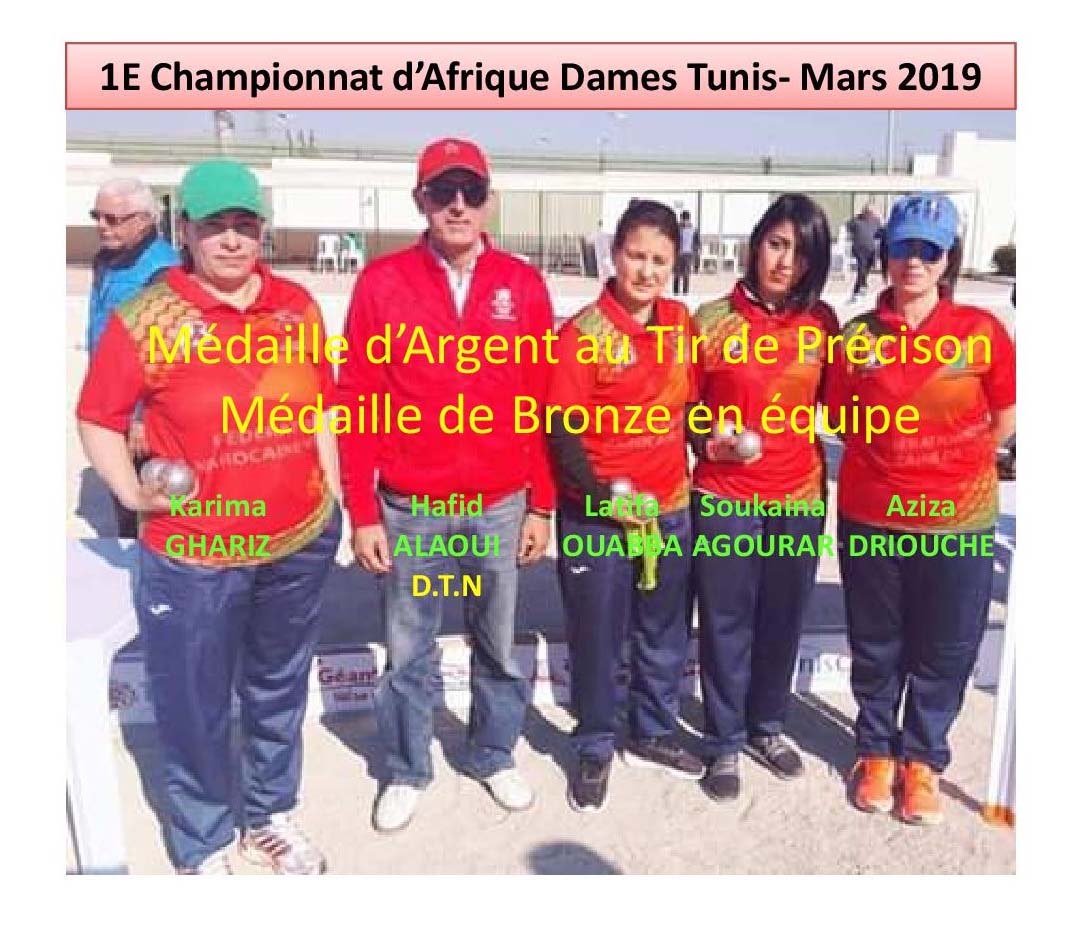 Médaille Argent et Médaille Bronze au 1er championnat d'Afrique de Pétanque Dames Tunis du 24 au 28/03/2019
