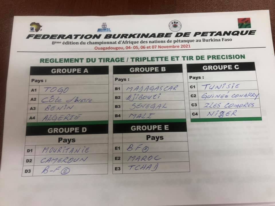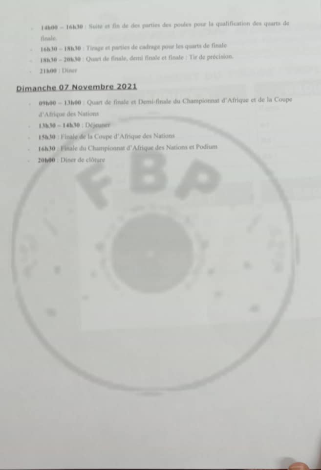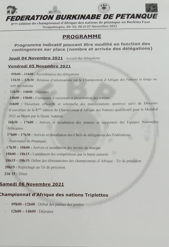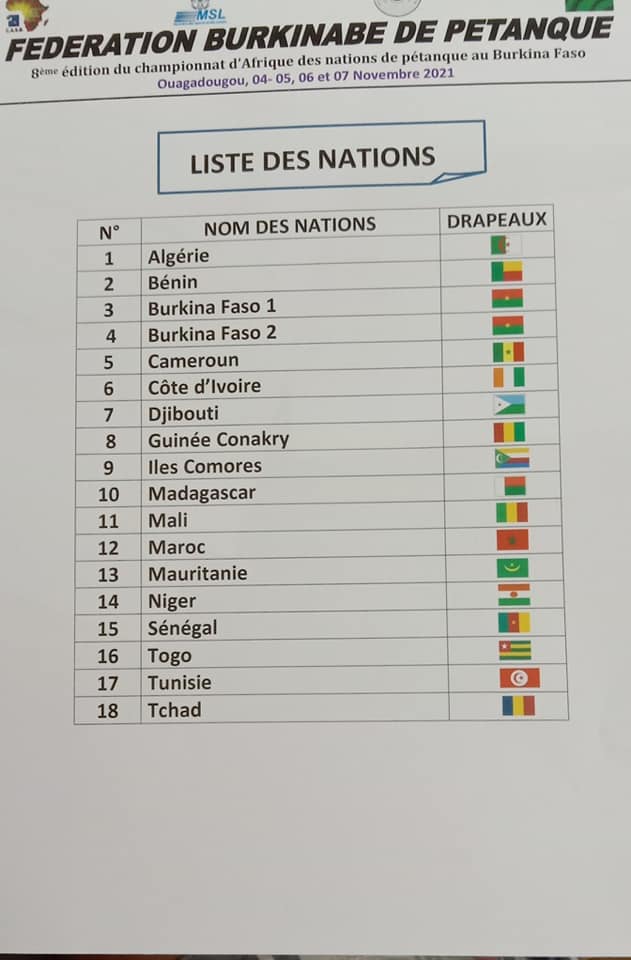Championnat d'Afrique de pétanque du 04 au 07/11/2021 à Burkina